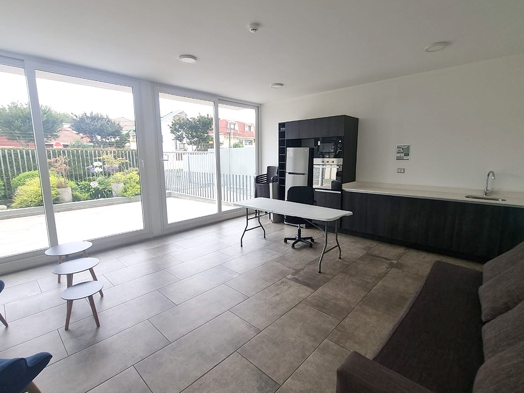 Edificio cuenta con acceso controlado 24/7 horas, bicicletero, sala multiuso y gimnasio.