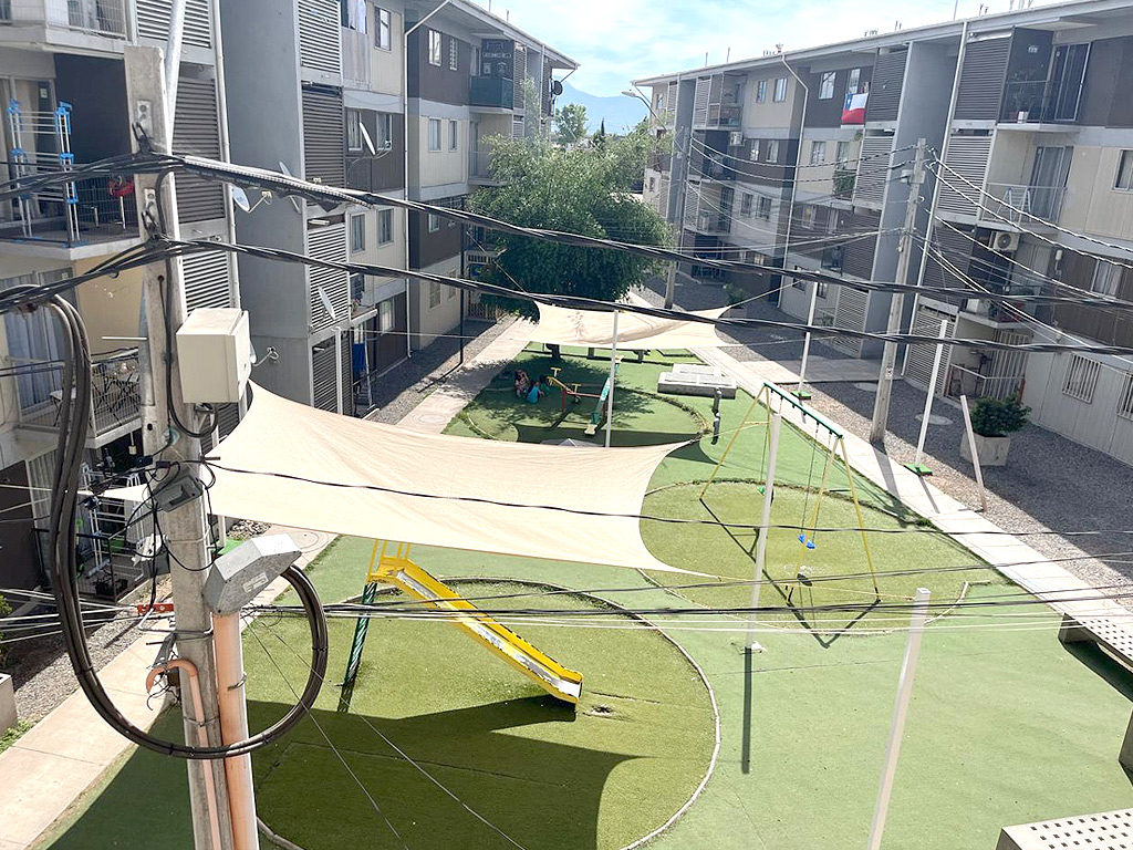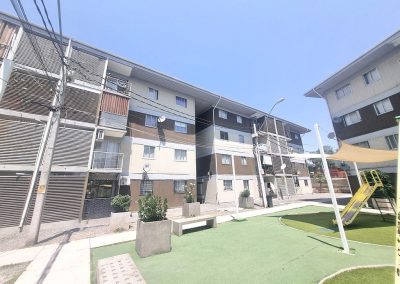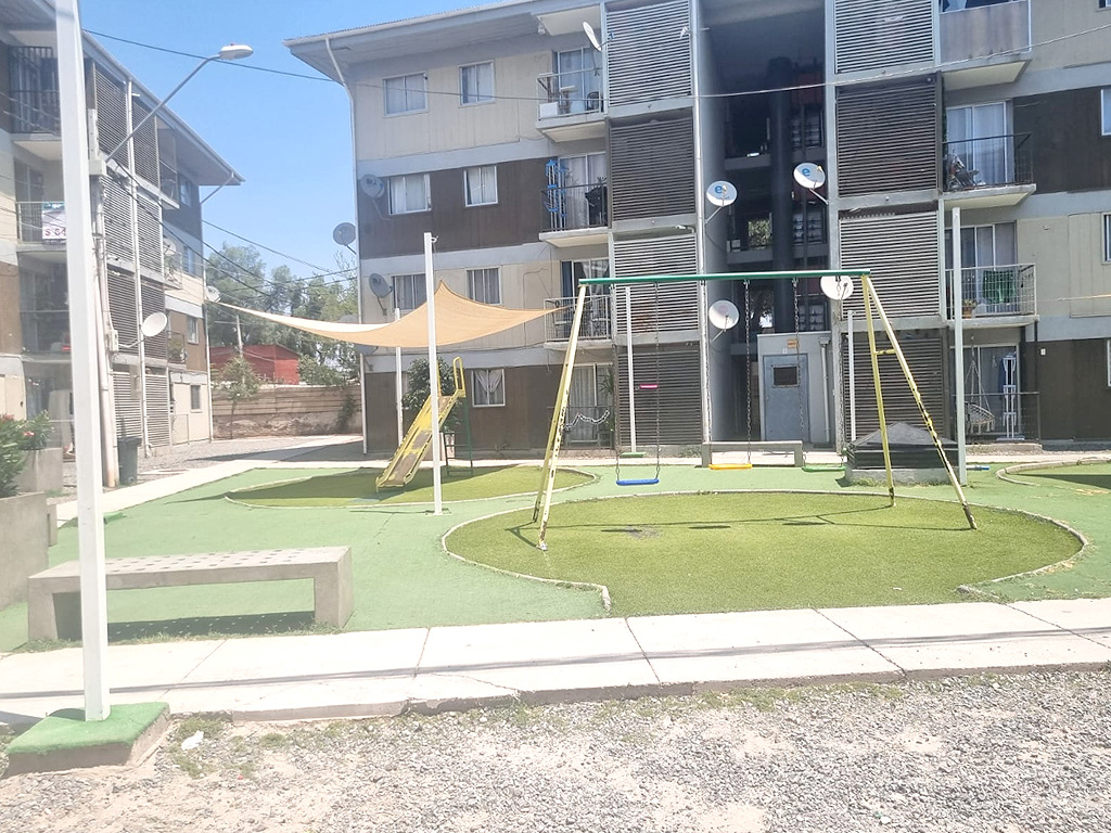 Edificio cuenta con accesos controlados, conserjería 24/7, áreas verdes, sala multiuso, bicicletero y zona de juegos infantiles.