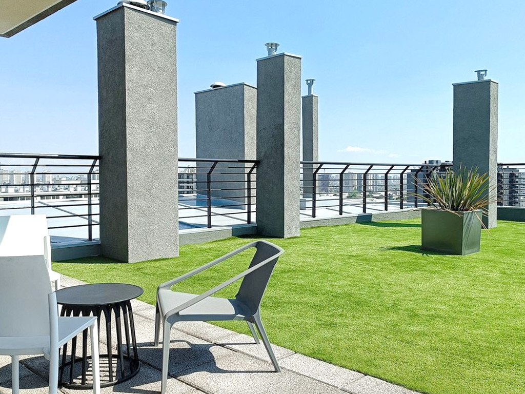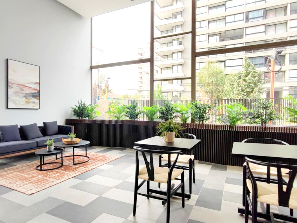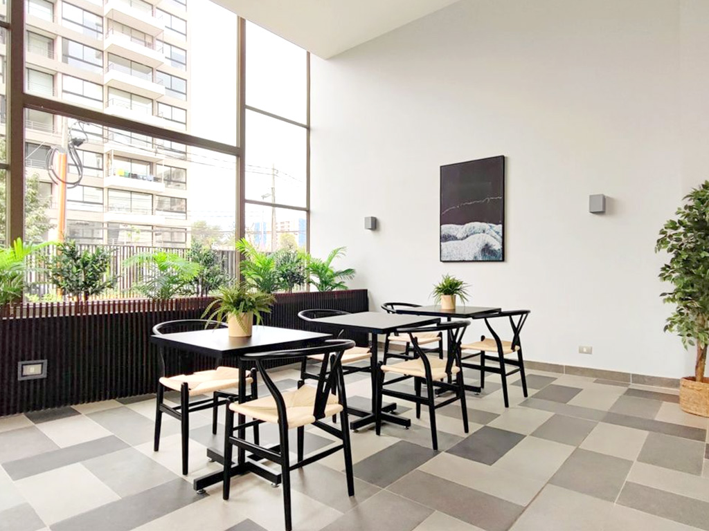 El edificio cuenta con áreas verdes, bicicletero, conserjería, gimnasio, zona de juegos infantiles, lavandería, portón eléctrico, quincho, sala multiuso y terraza panorámica.